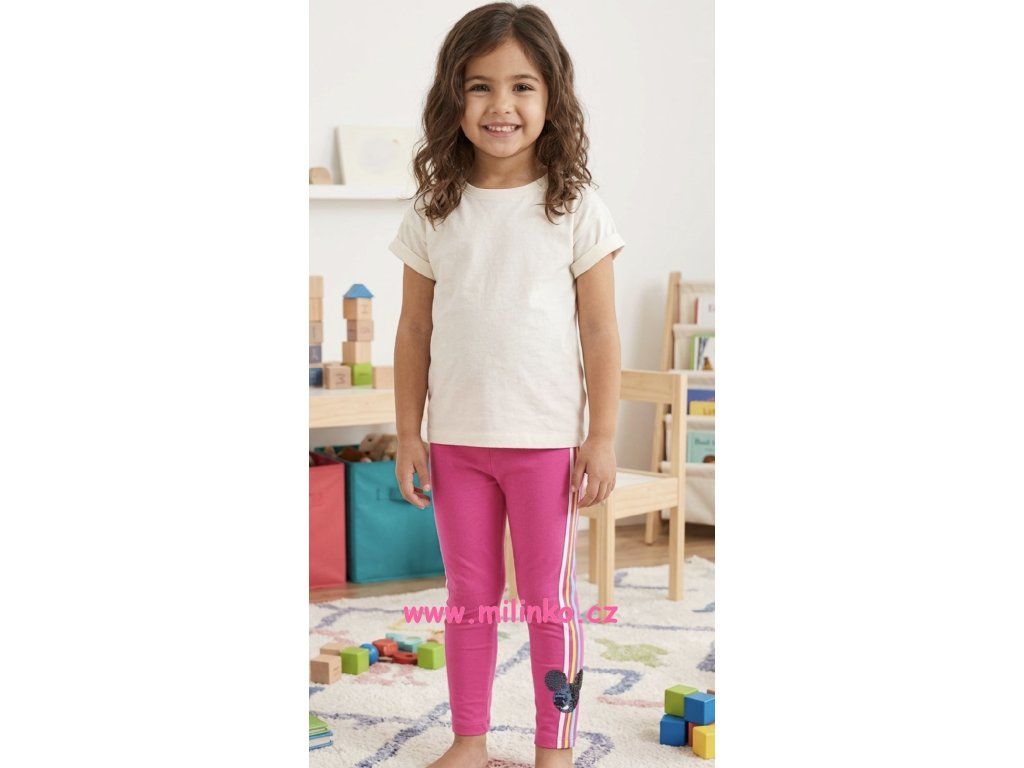 Dětské legíny pro mladé slečny. Dívčí legíny s flitry as potiskem oblíbené pohádkové postavičky Minnie. Legíny pro dívky se snadno kombinují s jiným dětským oblečením. Dětské legíny s flitry se hodí ik tričkám, šatům a sukýnkám.